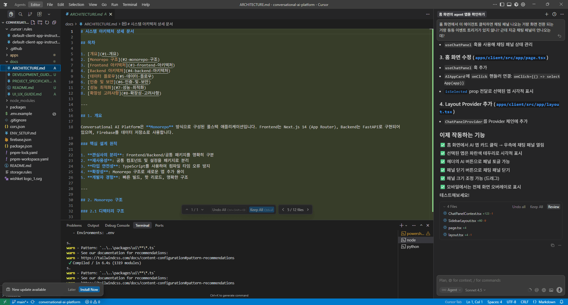 Coding agents like Cursor and Copilot are increasingly automating source code development. With a solid foundation in architecture design, UI/UX module implementation, and CI/CD, high-quality results can be generated almost instantaneously.